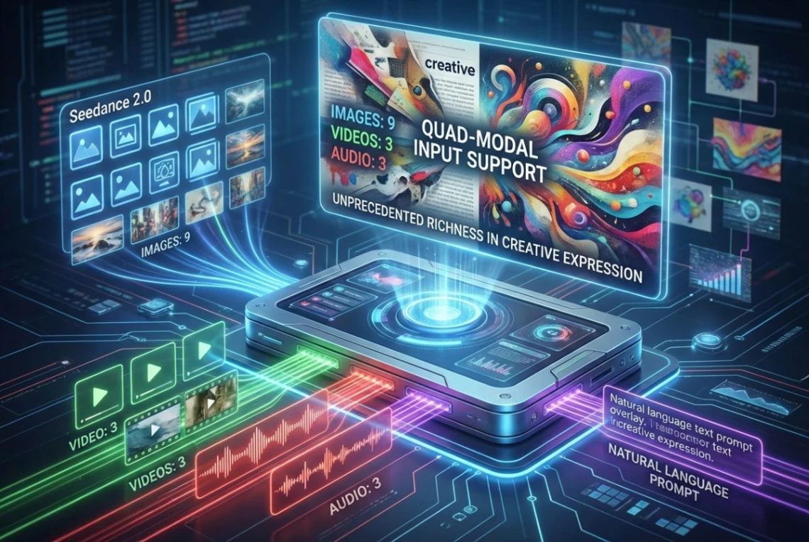 The core philosophy behind this model is "Directorial Control". It allows creators to input a massive combination of assets to guide the generation process. Specifically, the model supports up to 9 images, 3 video clips, 3 audio tracks, and natural language prompts simultaneously. This allows a user to provide a specific face (image), a specific camera movement (video), and a specific rhythm (audio), and the model will fuse them into a coherent new 4-to-15-second video. It is currently integrated into the Jimeng (Dreamina) ecosystem, Doubao, and the Volcano Ark experience center.
